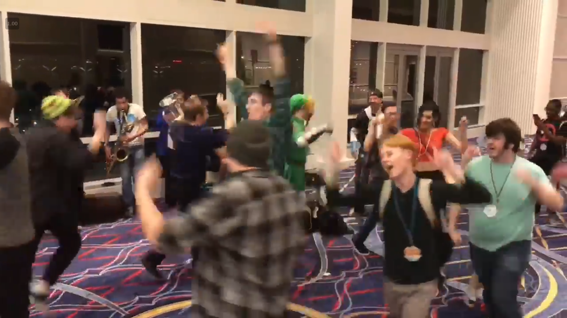 We rehearse for another solid segment and have our first concert at the Belvedere Bar inside the convention area. This was my first time doing the talking for the band between songs and introducing everyone (which I will refer to as MCing) for the con, so I was on full attention for everything. The concert went pretty well, and it was a great way for us to figure out exactly what to improve for our big concert the next day. Some things of note at the concert: Robbie Benson from Super Soul Bros was one of the sound engineers for us, and YouTuber SmoothMcGroove watched most of our performance. It was a great time and a fantastic learning experience.