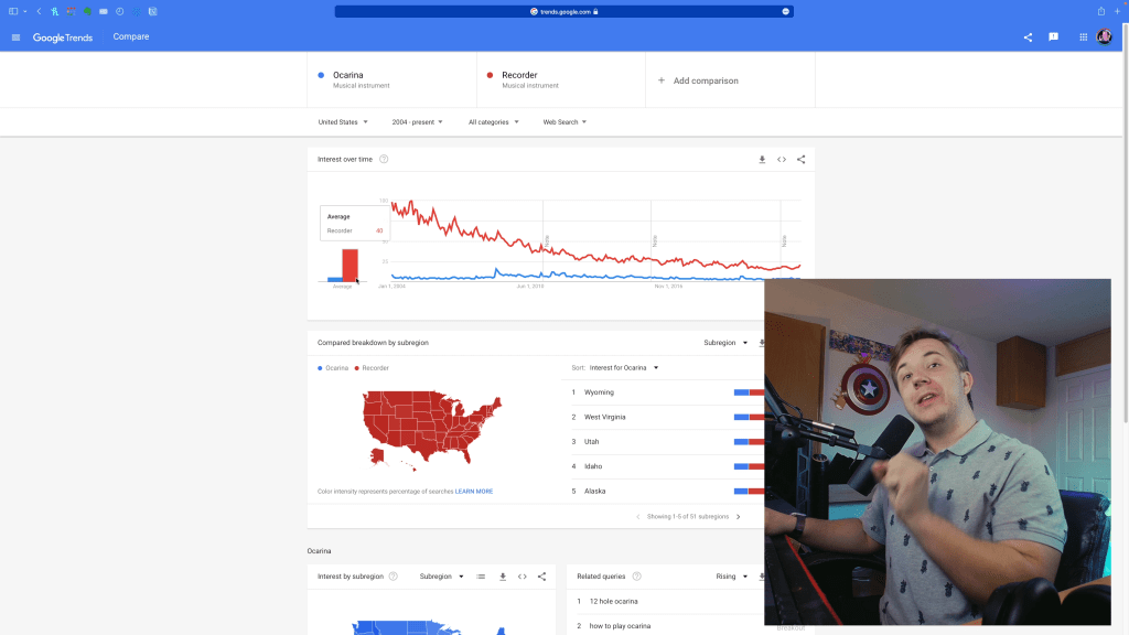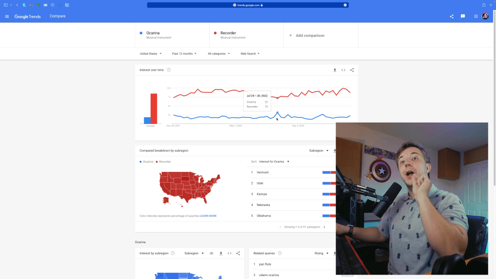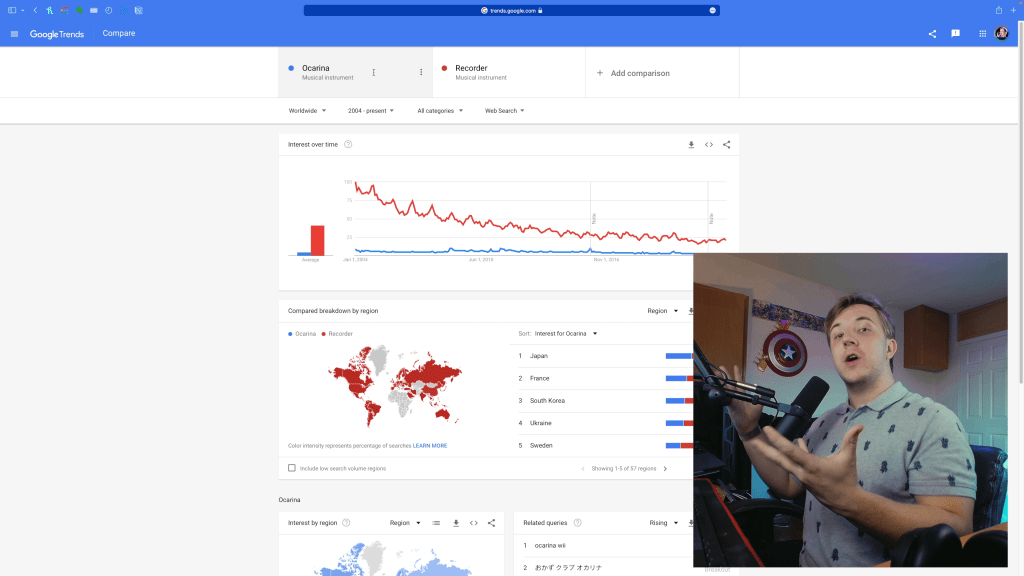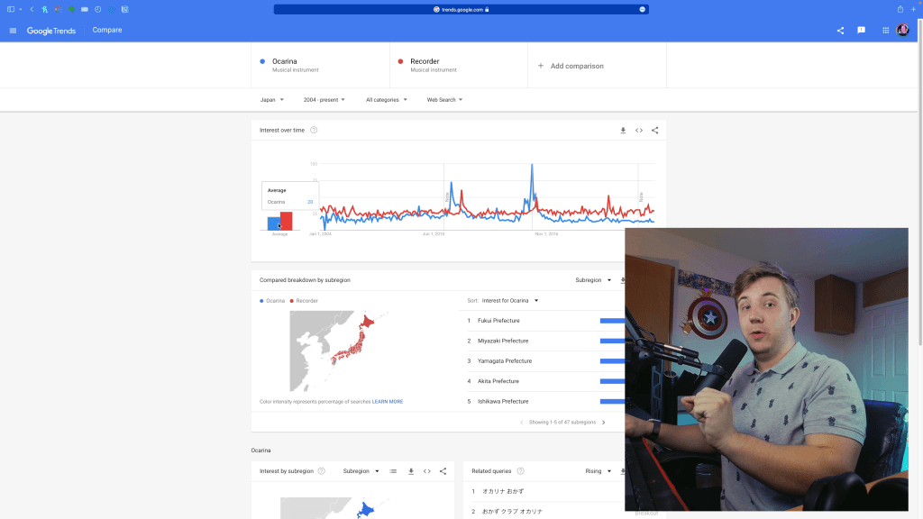 But when we switch to Japan, you’ll see ocarinas overtake recorders sometimes, and recorders only average a bit over ocarinas in search volume!