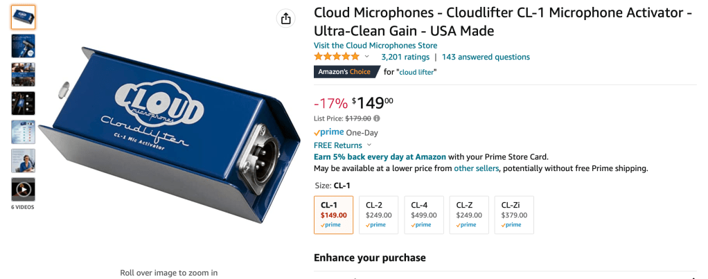 Gain Booster: Cloud Lifter (not necessary if you have a better XLR interface than I do)